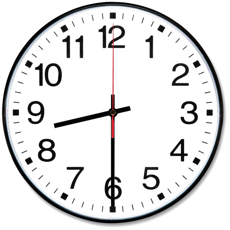 Then we get to the hour hand. It's not pointing to any of the hour markings but rather sits between the 8 and 9 positions. Is the time 8:30:00 or 9:30:00 or something like 8.5:30:00??