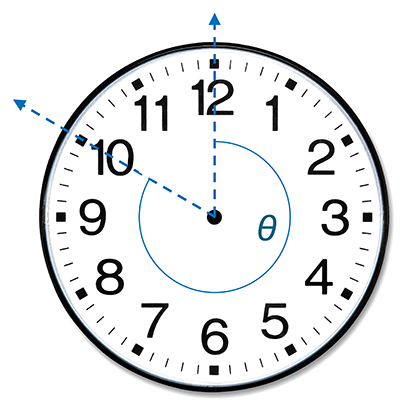Alternatively, you can identify the position of an hour by visualizing the angle between a vector pointing to the 12 o'clock position and a vector pointing to an hour. The hour marker position is located at: